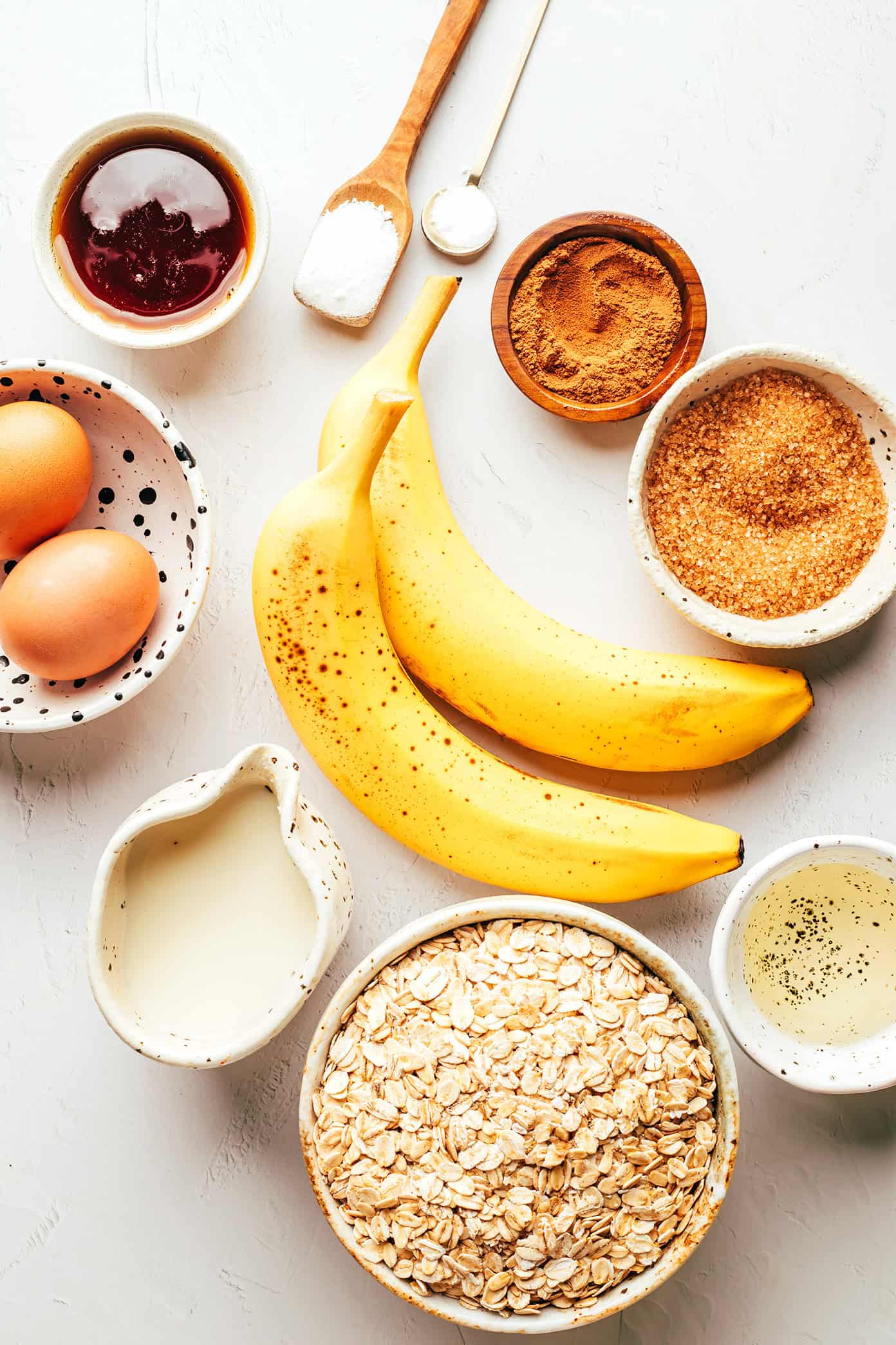 - Old-fashioned oats: Which we will pulse in the blender or food processor until they are finely ground to make our oat flour. Or, you are welcome to use store-bought oat flour instead.