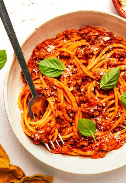 This High Protein Instant Pot Spaghetti makes spaghetti night faster, easier, and loaded with protein โ€” all in one pot!