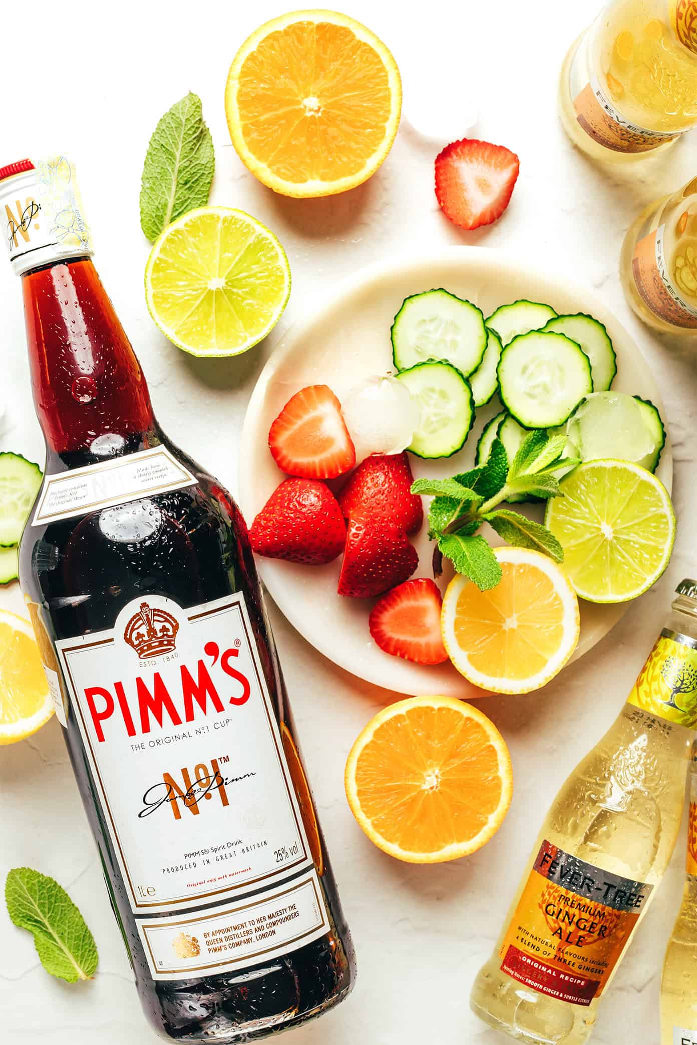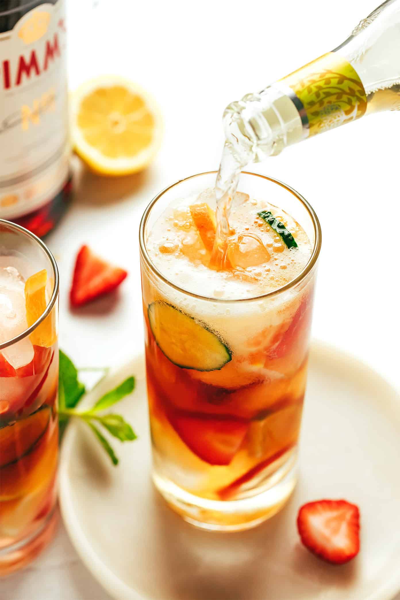 If you don’t already have a bottle of Pimm’s No. 1 in your bar cart, I highly recommend picking up a bottle of this fruity, botanical, gin-based liqueur to make some refreshing cocktails this summer. It’s the starring ingredient in a Pimm’s Cup, a fruit-filled sparkling cocktail that’s famously the signature drink of Wimbledon, traditionally mixed with either lemon soda or ginger ale and then layered into a highball glass with a rainbow of fresh fruit and cucumber slices and herbs. It’s a showstopper of a drink that’s delicious, refreshing, not-too-strong, and incredibly easy to make. And if you happen to be serving a group, it’s easy to batch into a pitcher as well.