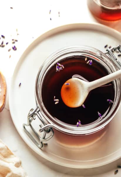 • Add lemon: Add a splash of lemon juice or lemon zest to make lemony lavender syrup.