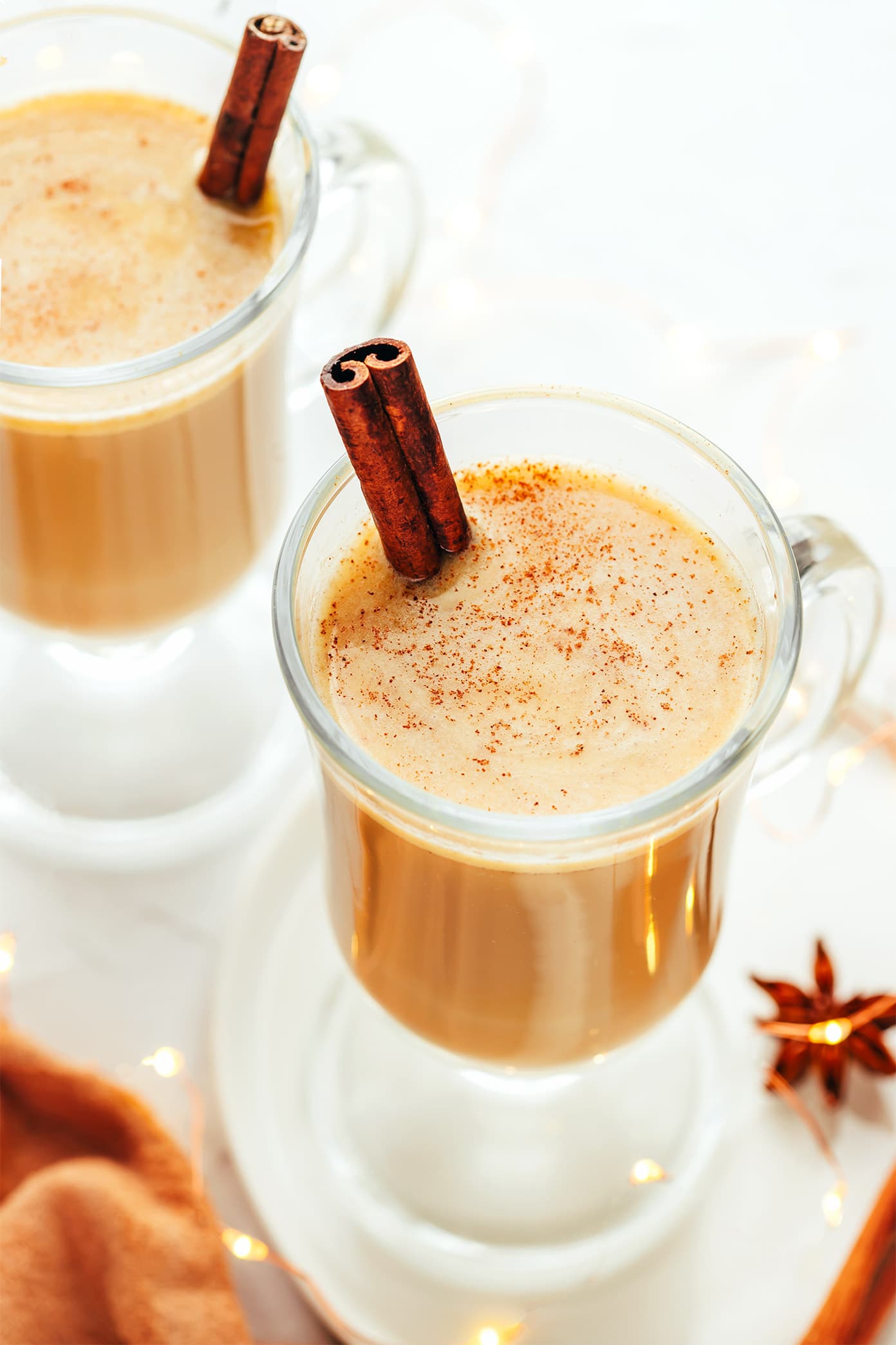 - Garnish (optional):ย Finally, you’re welcome to garnish your drink with a cinnamon stick or star anise if you’d like, or you’re also welcome to add a swirl of whipped cream on top.