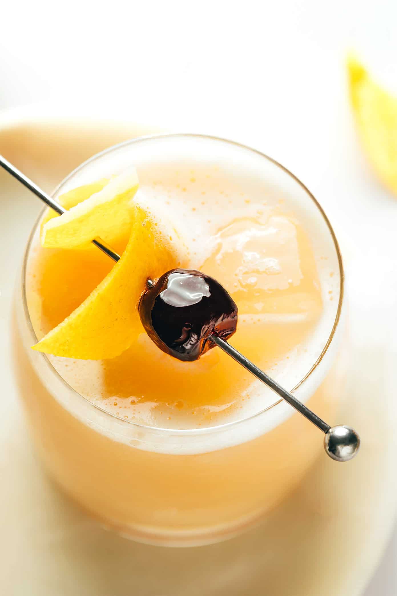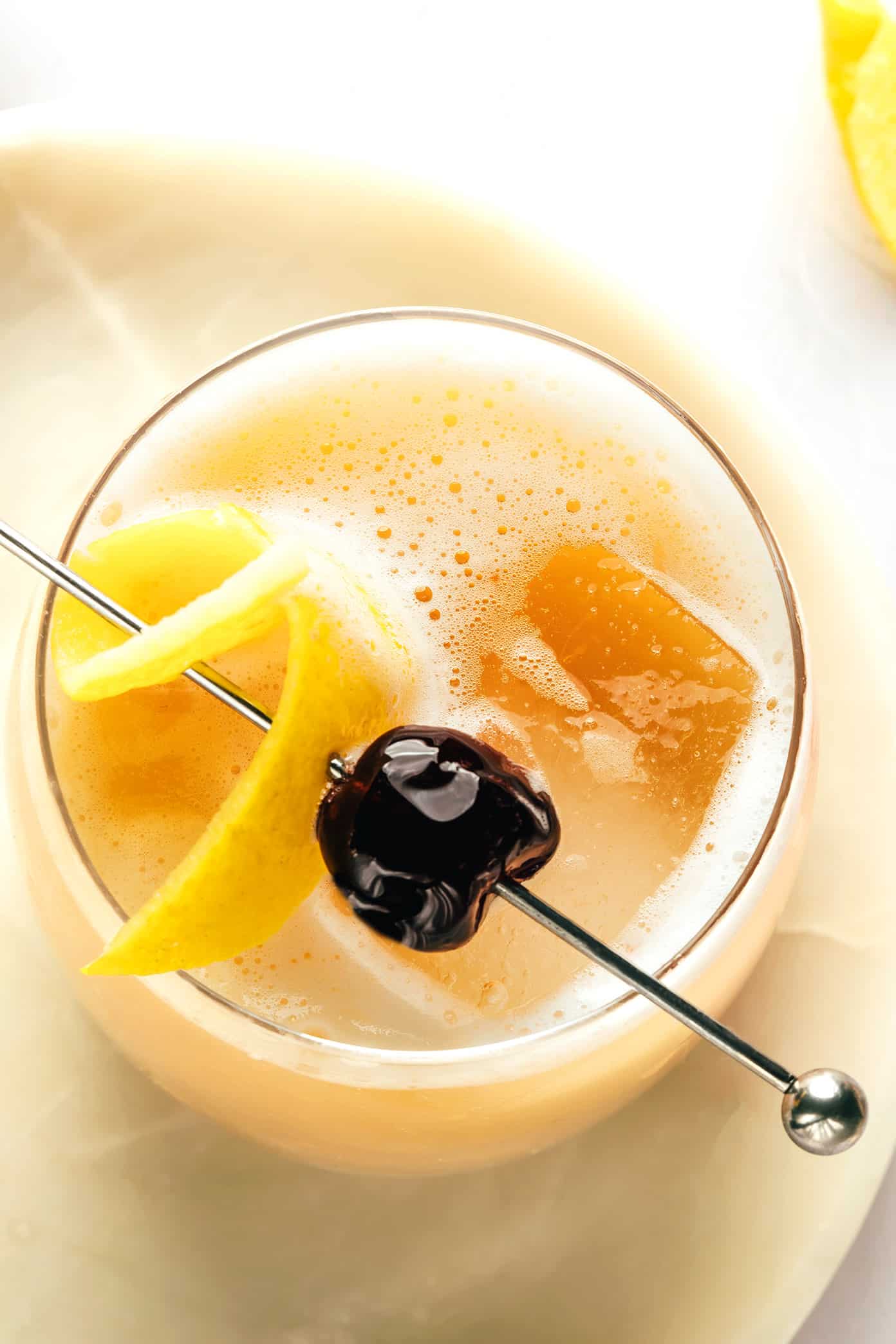 This classic drink is said to date all the way back to the 1870s, and has remained a favorite since then for good reason. It balances the deep, rich notes of whiskey with tartness from freshly-squeezed lemon juice and a hint of sweetener. And then here in our house, we’re partial to the version (also called a Boston Sour) made by shaking the cocktail with an egg white for a velvety, frothy, creamy layer on top. It always looks so elegant garnished with a lemon peel and cocktail cherry and comes together easily in just a few minutes!
