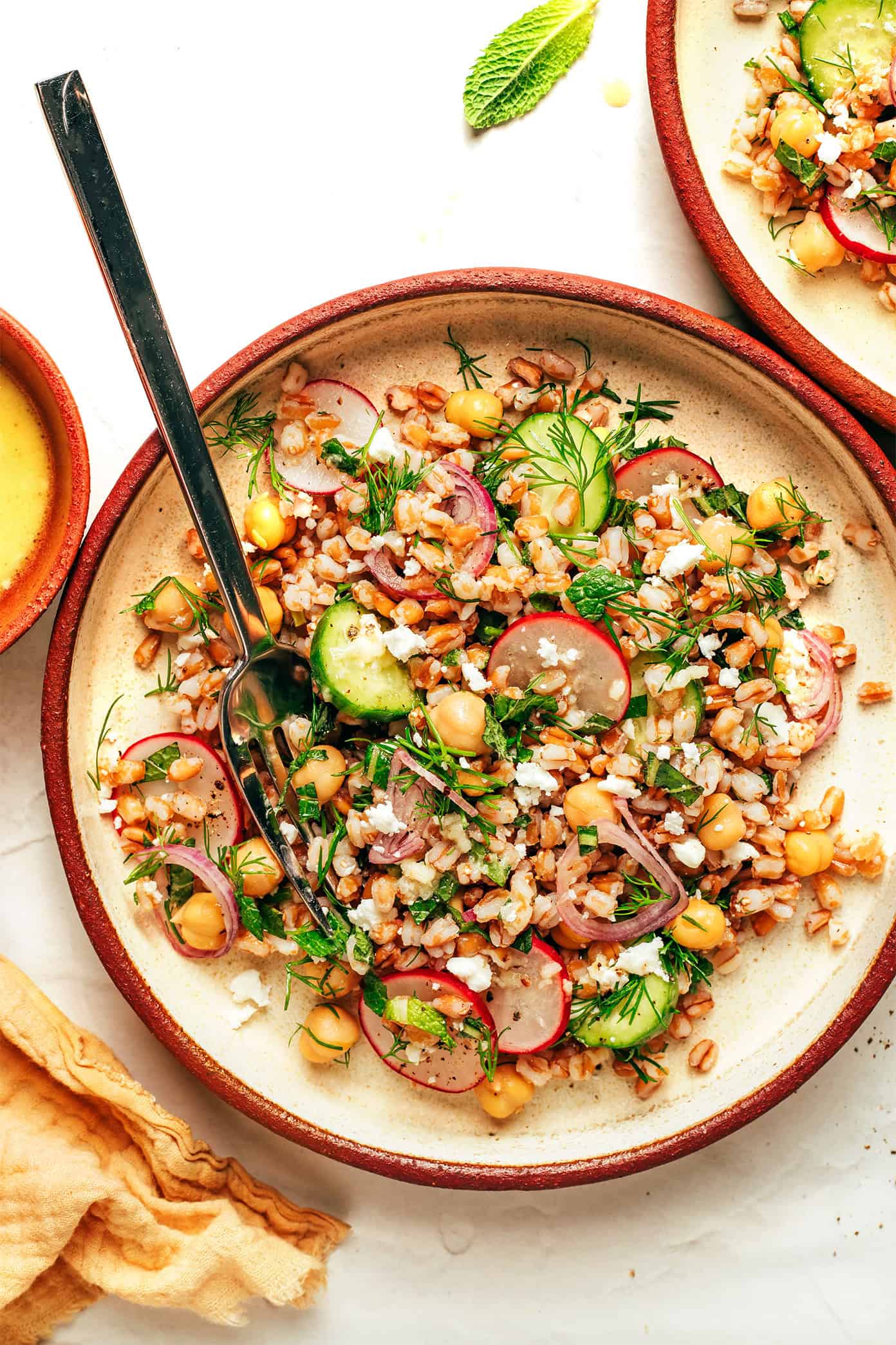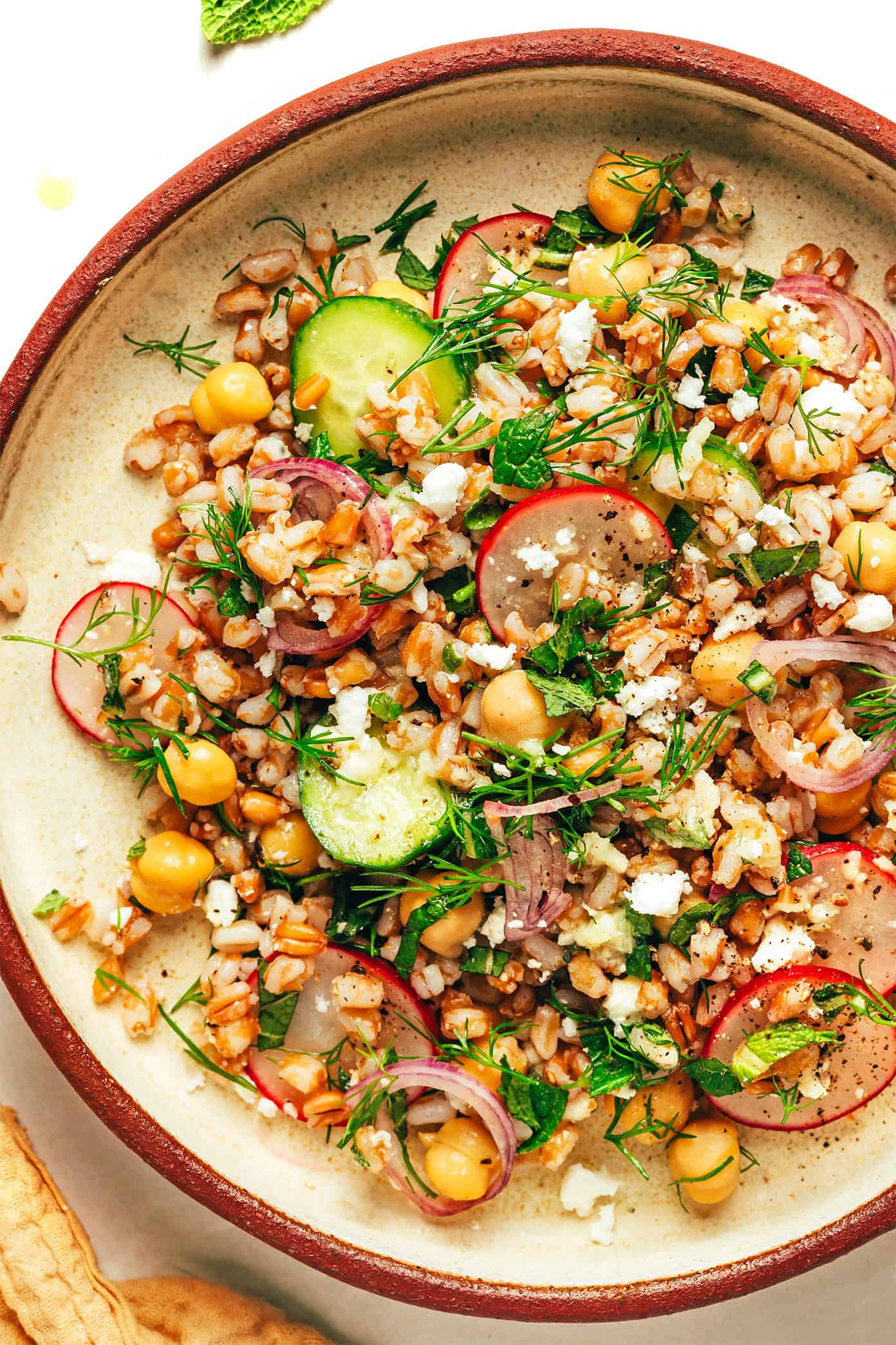 - Make it vegan: Omit the cheese to make vegan farro salad.