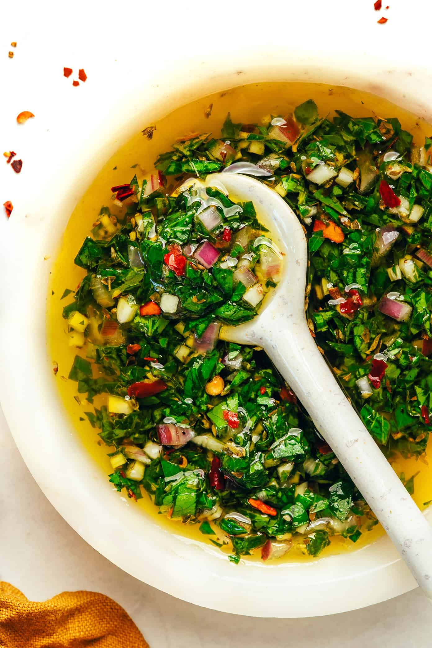 You will love this fresh, green and totally delicious Chimichurri recipe. Itโs flavorful, healthy, and can be prepared in less than 5 minutes!