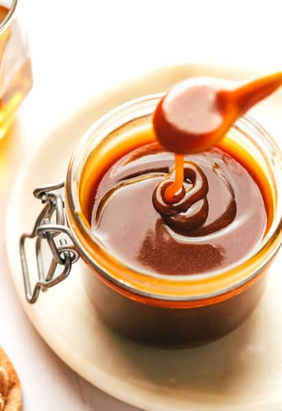 But here’s the best news — this homemade caramel sauce recipe is superย easy to make with ingredients that you likely already have in your kitchen. Plus it can be ready to go in just 10 minutes or so from start to finish. It’sย one of my favorite back-pocket dessert recipes that’s easy to whip up in a moment’s notice, and it is always a crowd fave.