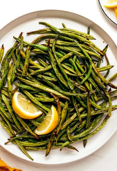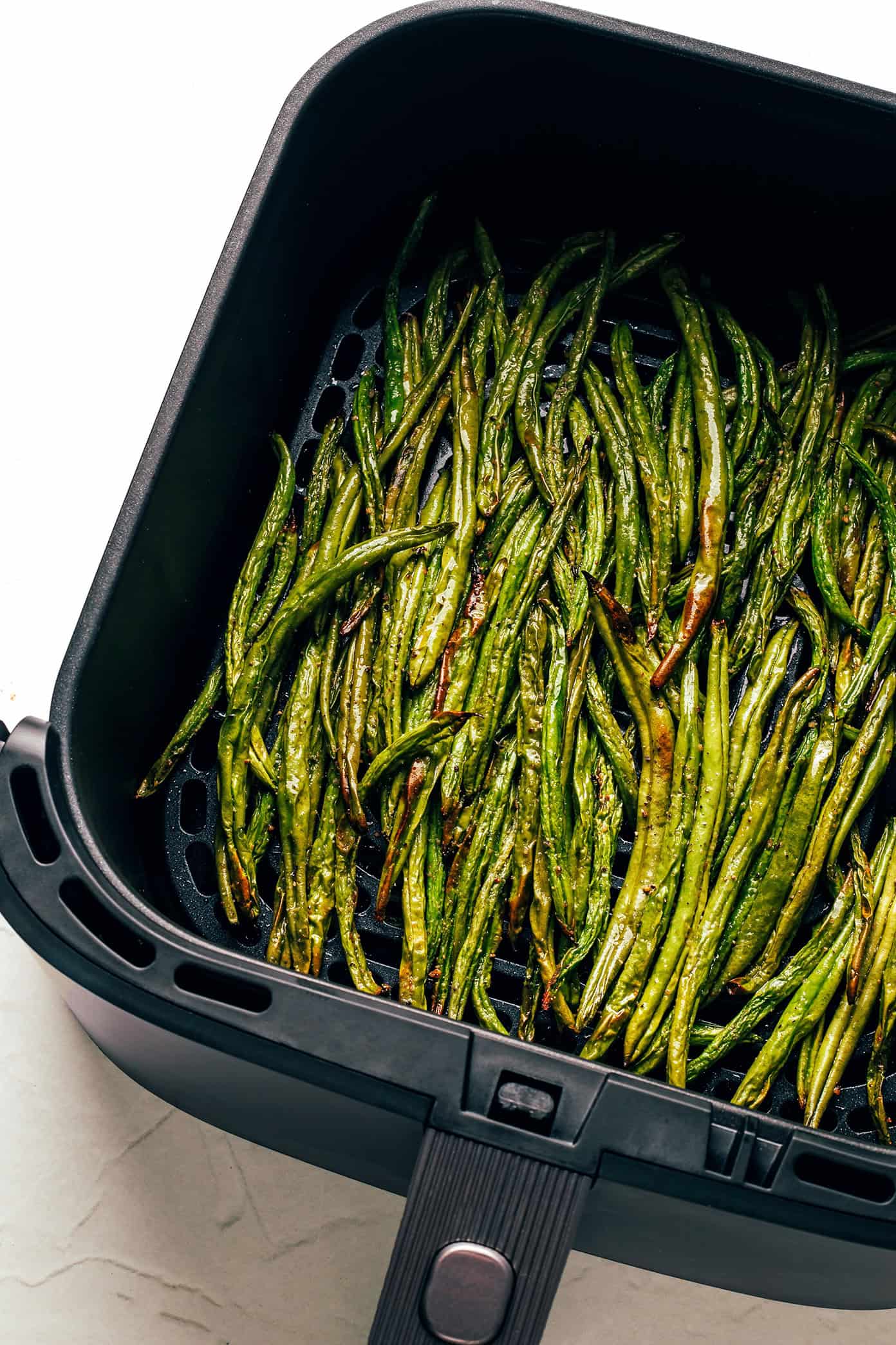 I highly recommend using French green beans (haricots verts) here, since they cook quickly and stay extra delicate, but regular green beans work just as well if that’s what you have on hand. We most often make ours simply with salt, pepper, and a hint of garlic powder, but you can absolutely play around with other spices to make them your own. However you choose to season them, air frying is the way to go!