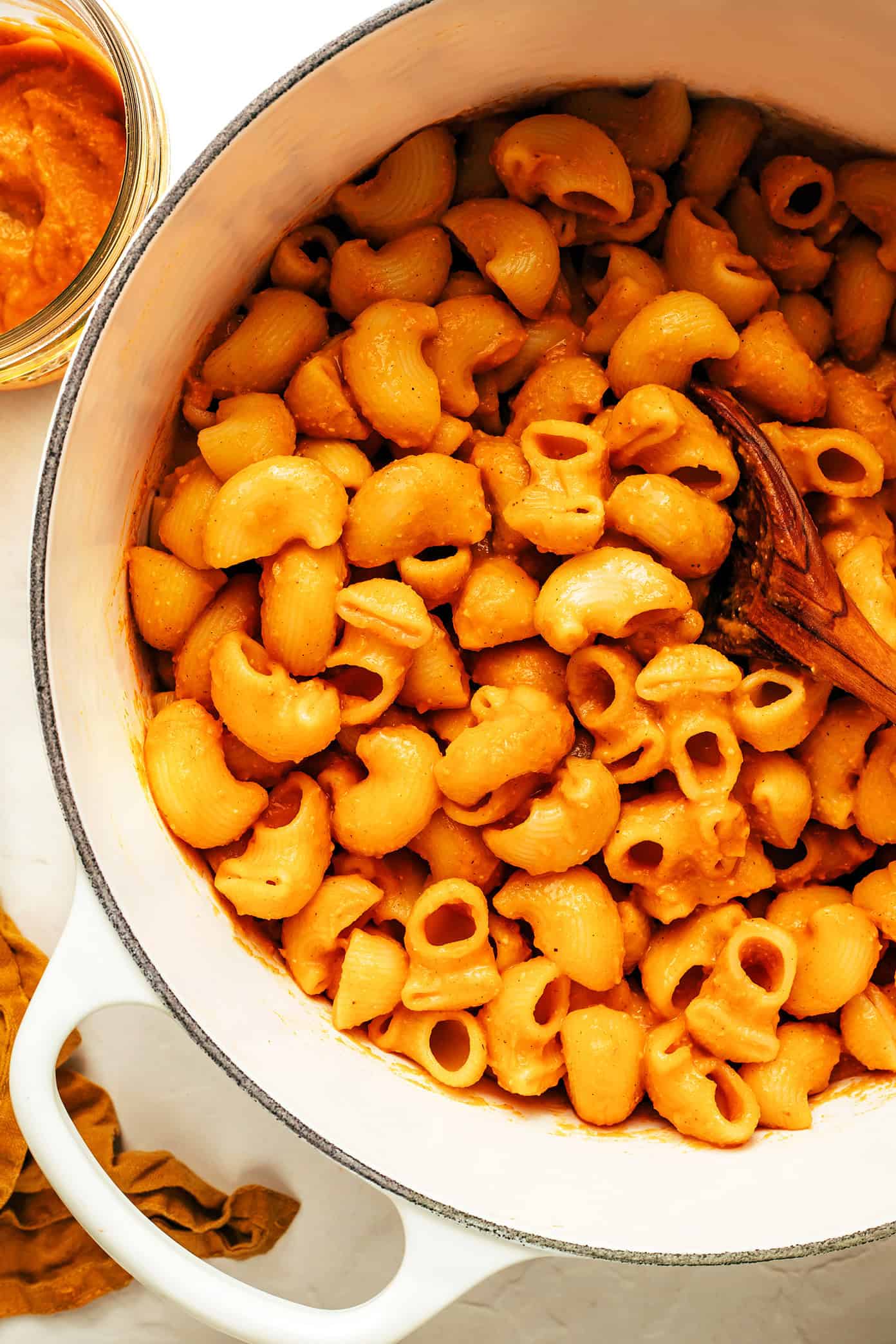 - Add a splash of broth or water if needed. If the sauce seems too thick or is having trouble blending, add in a splash of vegetable broth or water (even better if it’s starchy pasta water) to thin it out slightly.