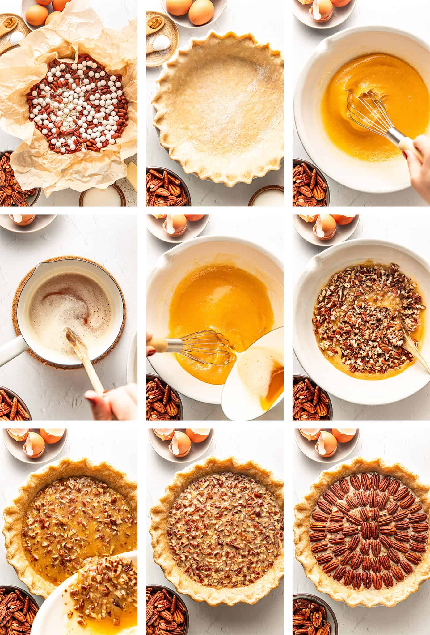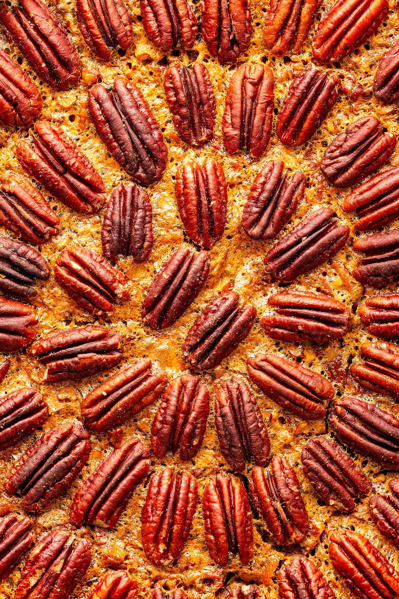 4. Assemble. Pour the filling into the blind-baked crust. Arrange the remaining 2 cups of pecan halves decoratively on top.