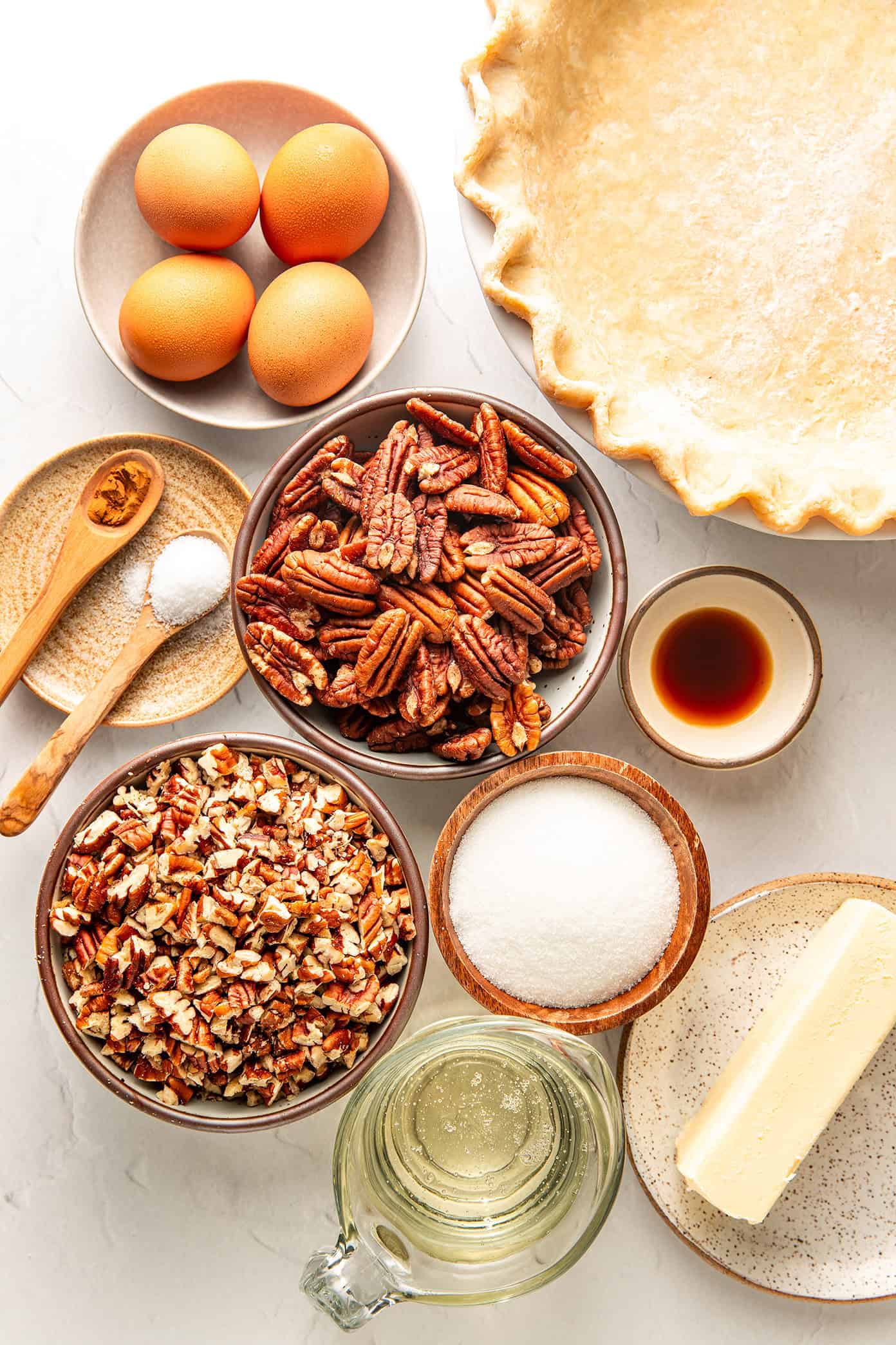 Corn syrup (which is different than high fructose corn syrup) is what gives classic pecan pie its glossy, custardy texture. Feel free to try my maple pecan pie if you’d prefer a naturally sweetened version.