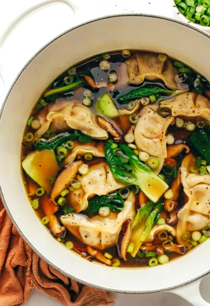 This cozy potsticker soup recipe comes together in just 25 minutes and is easy to customize with your favorite dumplings and veggies.