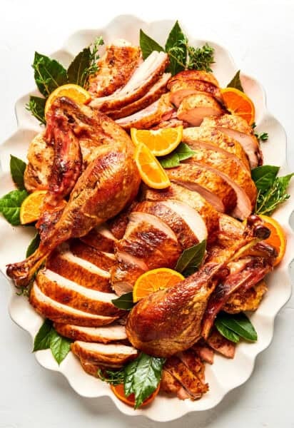 Iโve included a step-by-step video and photos below, along with some of the best tips Iโve picked up over my years of turkey carving. So sharpen your knife (a small but important step!) and let’s do this!